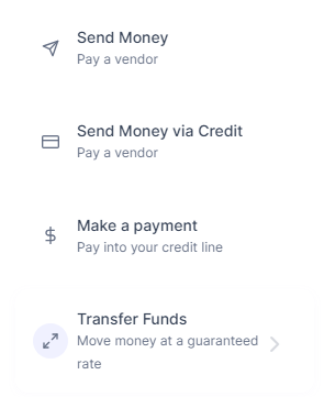 1. Once logged into your Jeeves Cash account, locate the dashboard and look for the quick action panel.