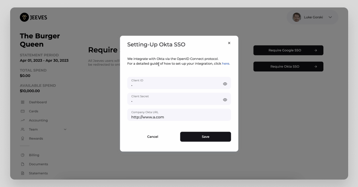 Paso 4: Configura Okta SSO dentro de tu cuenta de Jeeves