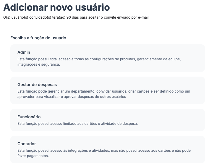 - Selecione a função que deseja atribuir ao novo membro da equipe.