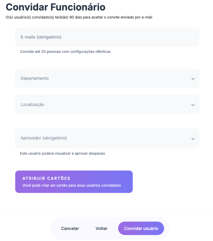 Se desejar, você pode designar um usuário como aprovador, permitindo que ele revise as despesas. Esta etapa é opcional e pode ser ignorada se não for aplicável.