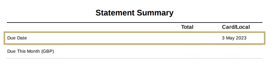 - Due this month: Apresenta o saldo total a pagar, correspondente aos encargos efetuados no mês e que estão refletidos no extrato da conta.